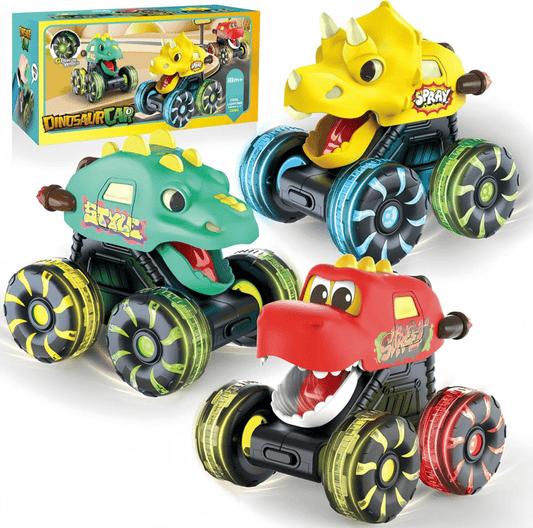 Pack Of 03 - Press & Go Dino Truck Toy with Motion Activated Light for Toddlers