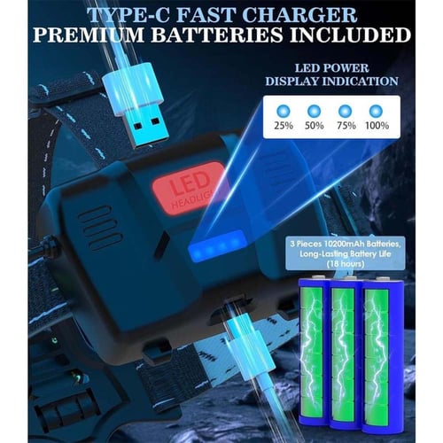 Pack Of 02 - 150000 lumen rechargeable headlamp-60H long battery life detachable