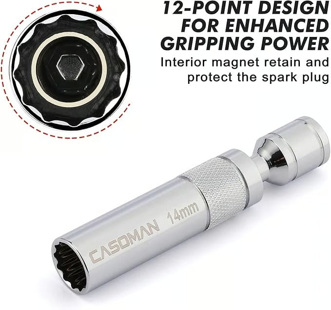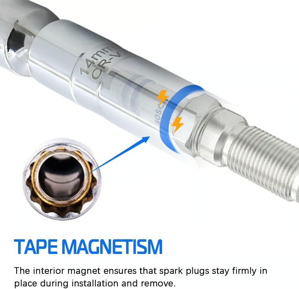 Easy to Use: Built-in strong magnetic gripping systems for easy spark plug removal, ensuring they are firmly held in place during installation and removal. 360-degree swivel for maximum flexibility.