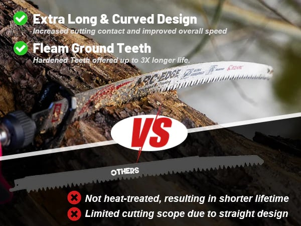 This 15-inch extra-long pruning saw blade features a curved arc edge and aggressive Japanese-style teeth for ultra-fast, coarse cutting. Compared to standard reciprocating saw blades, it delivers significantly more cutting power â ideal for trimming thick branches and heavy-duty yard work.